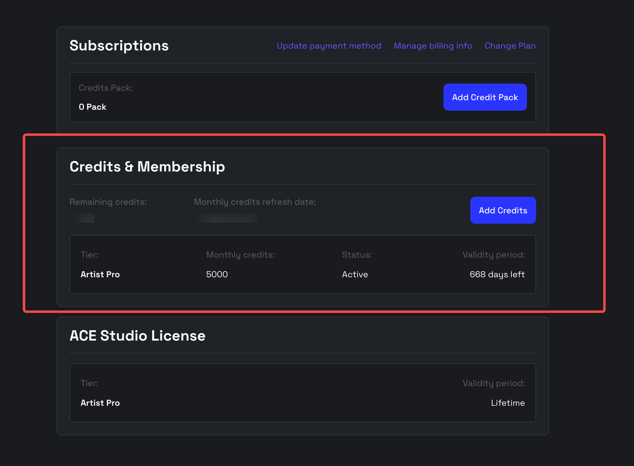 - You can check your status here: https://acestudio.ai/app/account/manage-subscription.